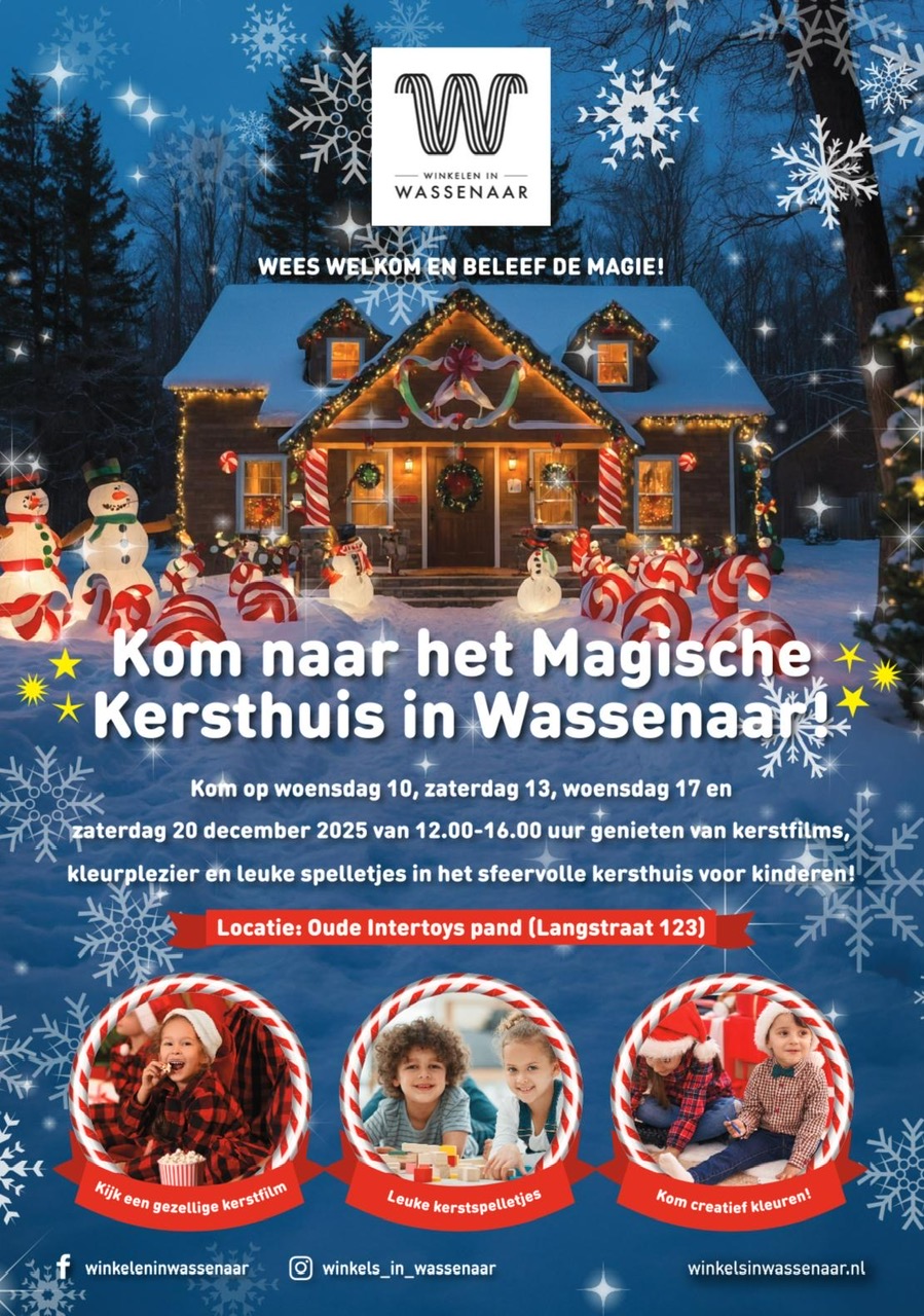 Vanaf woensdag 10 december opent in het centrum van Wassenaar het sfeervolle Kersthuis: een feestelijke plek speciaal ingericht voor kinderen. Het voormalige Intertoys-pand aan Langstraat 123 wordt vier dagen lang omgetoverd tot een warme, gezellige kerstwereld.